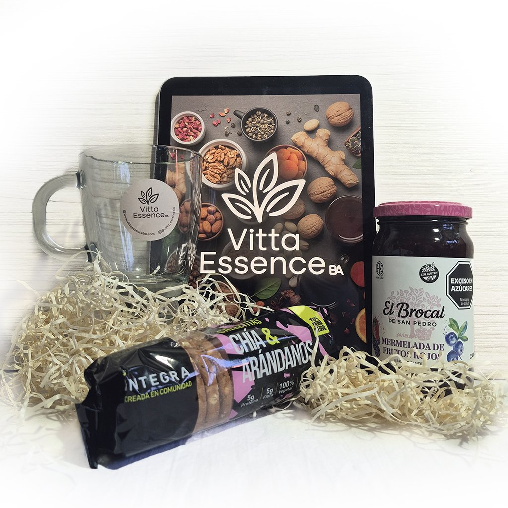 - Transforma tu desayuno o merienda en un ritual de bienestar y placer. Este pack reúne todo lo que necesitas para crear un momento único: una taza acogedora, la dulzura vibrante y antioxidante de la mermelada de frutos rojos y la textura sabrosa y nutritiva de galletitas crujientes de semillas.